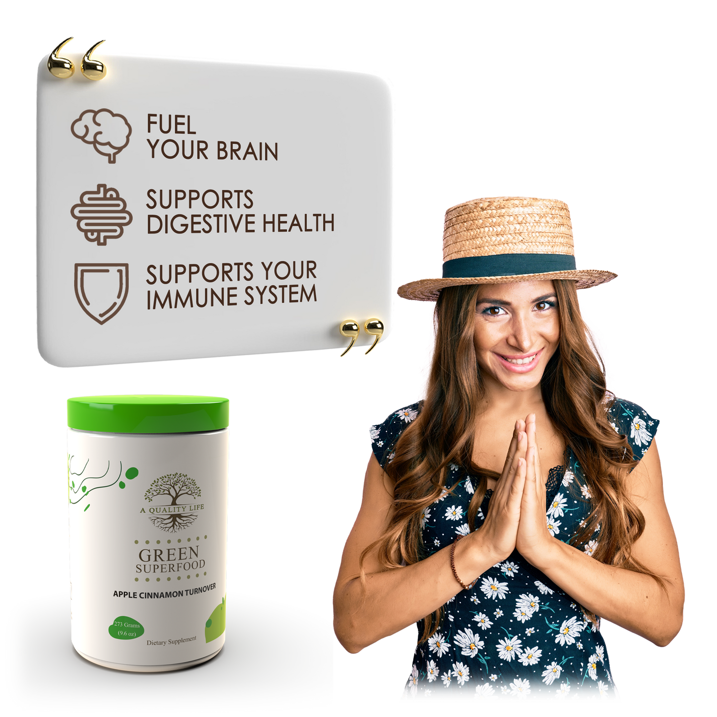 Green Superfood is a premium blend of green fruits and vegetables, probiotics, minerals, and vitamins your body craves on a daily basis. This premium superfood provides a boost for a healthier immune system, a boost in your daily energy, improved nutrition, and even a boost in your cognitive focus. It provides extraordinary nutritional value for individuals that suffer from a nutrient-deficient diet and even has a delicious Apple Cinnamon Turnover flavor, so it’s great to mix into shakes or simply mix with a glass of water and drink.