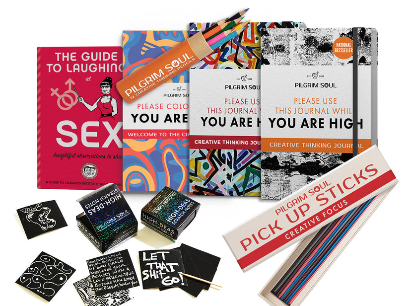 Conceived to be used while you are high - however you get there. Each guided journal is filled with 50 unique creative thinking exercises that will provide hours of fun, increase your creativity, and build more productive habits.