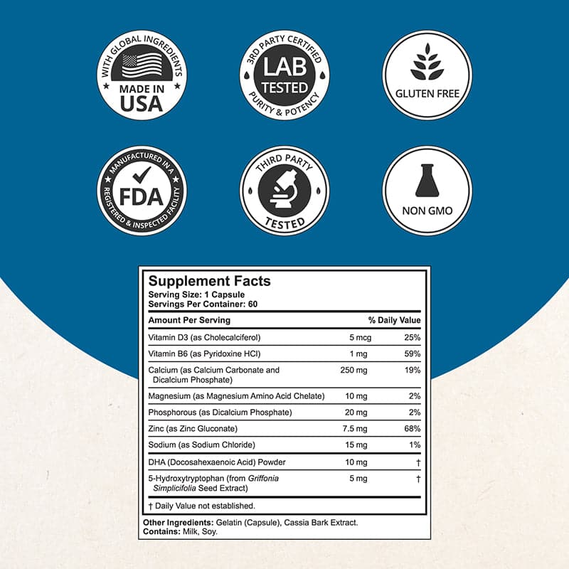 Expertly formulated with Calcium, Magnesium, Phosphorous, and Zinc for bone growth, bone mineral density, immunity, and overall health of children (10+) and teens. Added with Vitamin D3 for enhanced calcium absorption, plus vitamin B6, DHA, and 5-HTP for healthy brain function.*