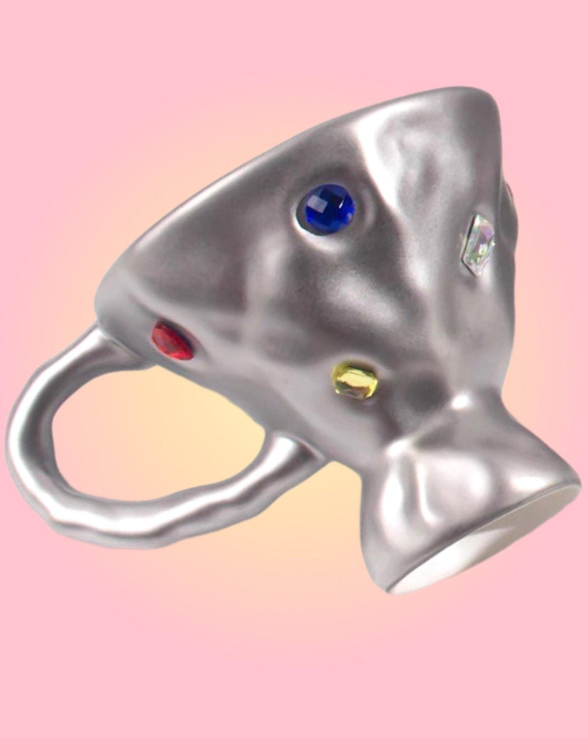 Elevate your morning routine with this chic and stylish designer handcrafted ceramic mug. This sleek handmade mug features a gemstones designs and an irregular surface and is perfect for cool girls or couples to use at home & office.