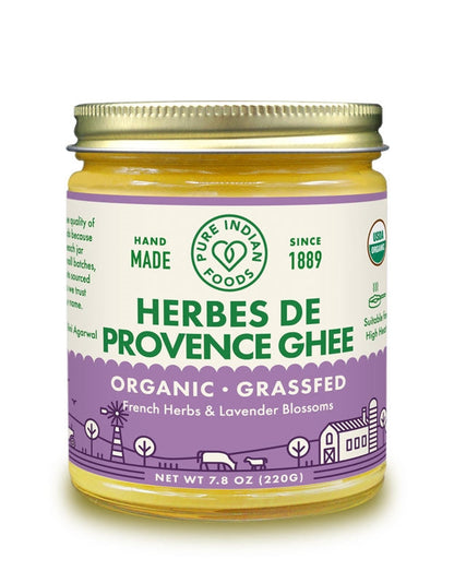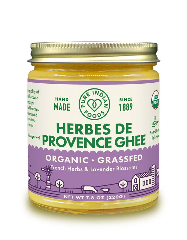 Add amazing flavor to a variety of dishes with our organic Herbes de Provence ghee. This grass fed Herbes de Provence ghee is an artisanal butter that contains a multitude of fresh herbs and spices that give it a distinct, rich taste. The flavor is similar to the fragrance of the fresh herbs you find in the French countryside – thyme and lavender.