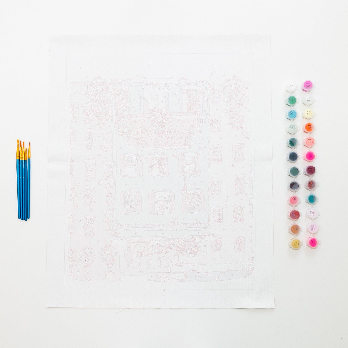 Each kit includes a 16x20 inch printed canvas, a set of 5 premium brushes, and pots of acrylic paint with the appropriate colors with corresponding numbers. Also to make your craft easy and more joyful we have added a small printed finished picture to guide and inspire your painting. Even if you are new to this whole experience still it will be worth every hour spent.