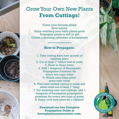 Transform your plant cuttings into thriving new plants effortlessly with our special formula. Whether you prefer soil or water, this formula supercharges root growth, making your plants grow faster. It doesn't just promote growth; it also shields your new plants from elements and keeps them hydrated. Even if you've struggled with tricky plants like fiddle leaf figs, our formula can make it happen. Plus, we've included a helpful guide to ensure your success. Just one bottle of Houseplant Resource Center Root Hormone Formula is all you need to start your propagation journey with confidence. Watch your cuttings flourish into healthy, beautiful plants!