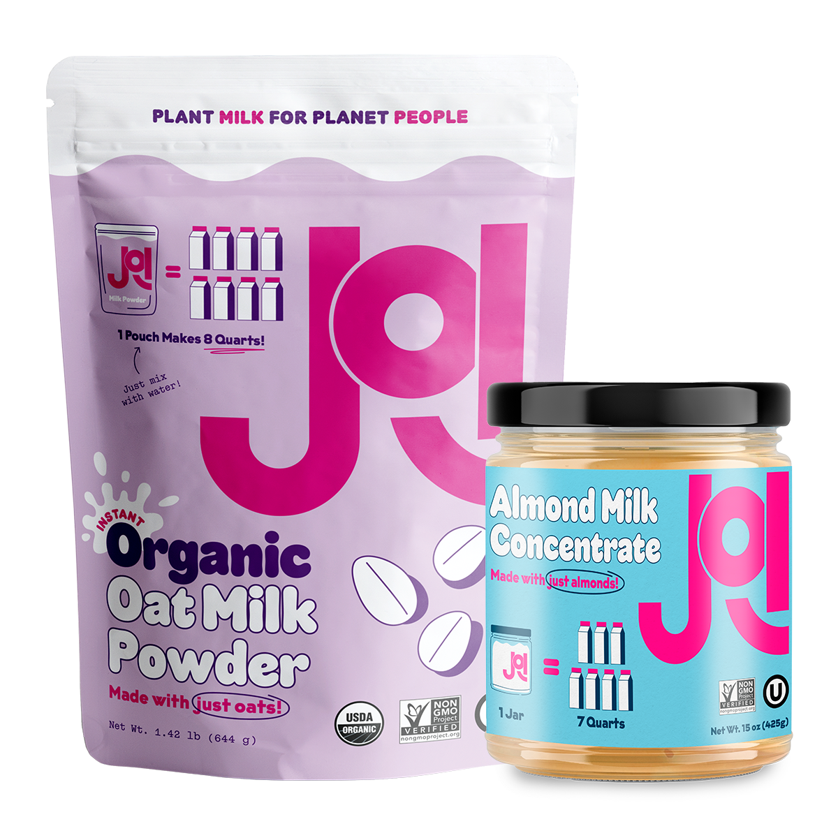 Our two bestsellers in a single bundle. Kick off your JOI journey with our full fat Almond Milk Base and our high fiber, oil free Oat Milk Powder. Mix both in a blender for a truly decadent, additive free, plant milk experience.