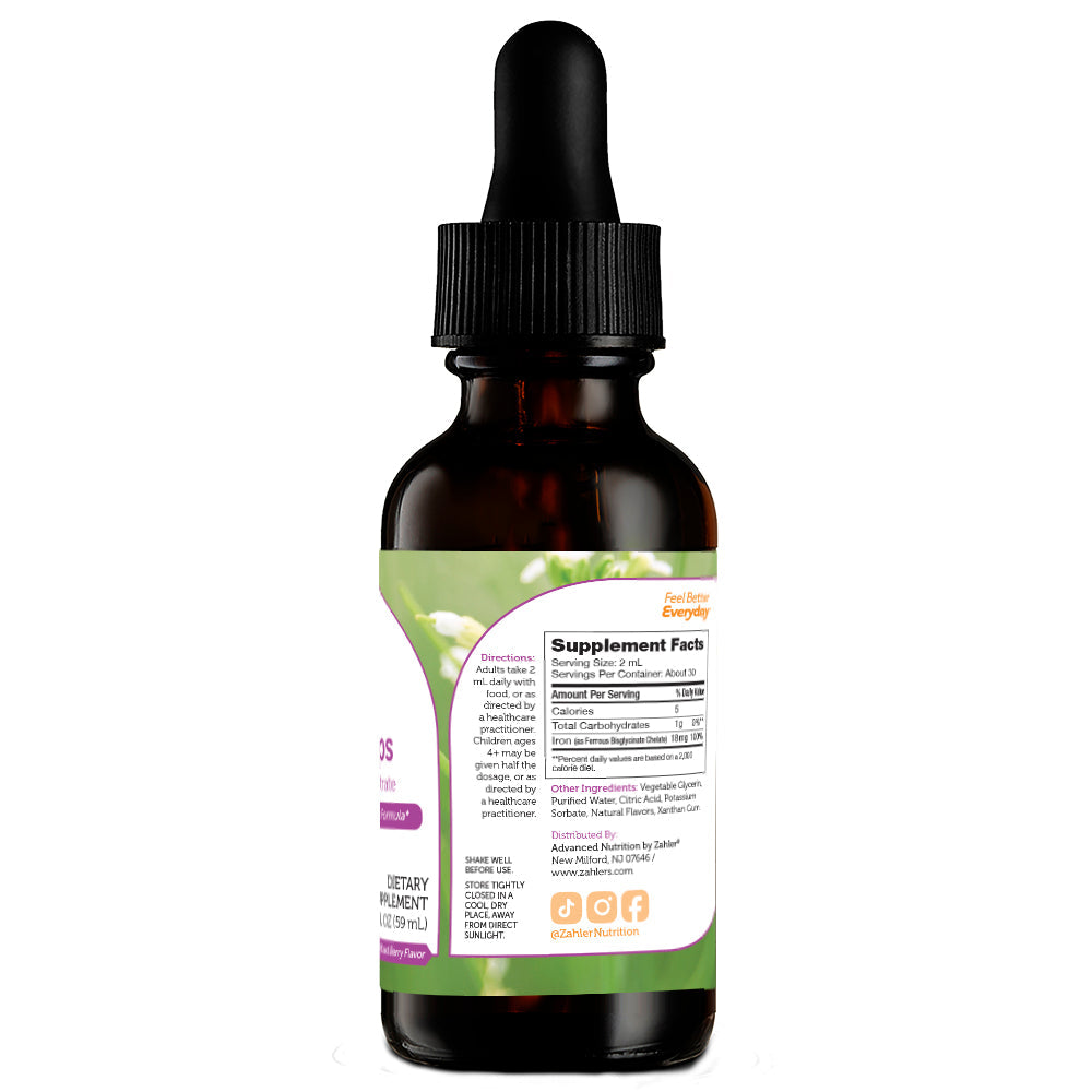 Zahler's Iron Drops is a super-concentrated bioavailable formula featuring 18 mg of the finest iron per dose. The mineral iron is crucial for red blood cell formation and many other bodily functions.