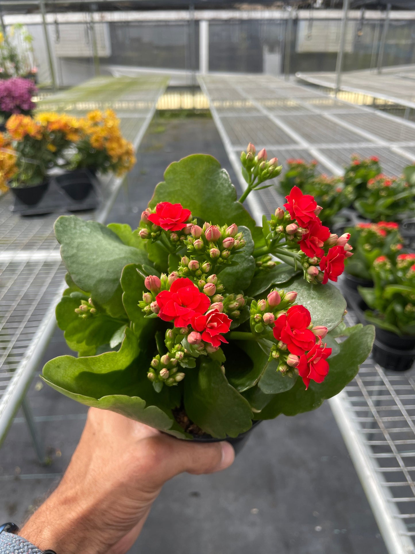 • Description: Kalanchoe blossfeldiana, commonly called kalanchoe, is a dark green, succulent perennial with scallop-edged leaves and large umbels of flower clusters held above the foliage. It has an upright, multi-branched growth habit. These bright red, pink or yellow flower clusters last for weeks.