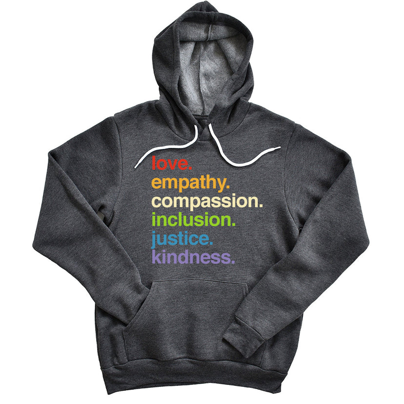 Wear our 'Kindness Is' Pride pullover fleece proudly, and let it be a conversation starter. Be a catalyst for positive change, inspiring others to embrace these values and work towards a brighter, more inclusive future.