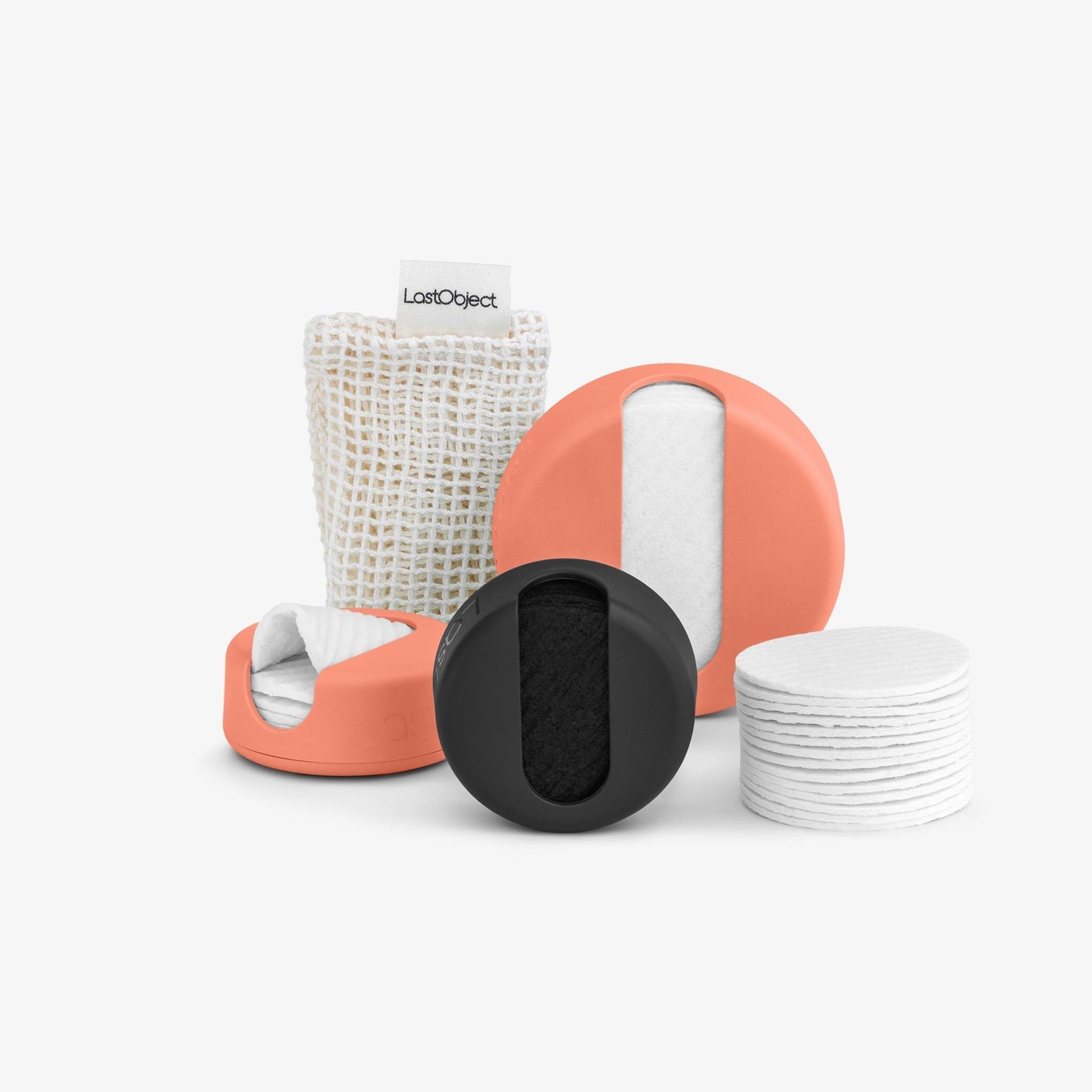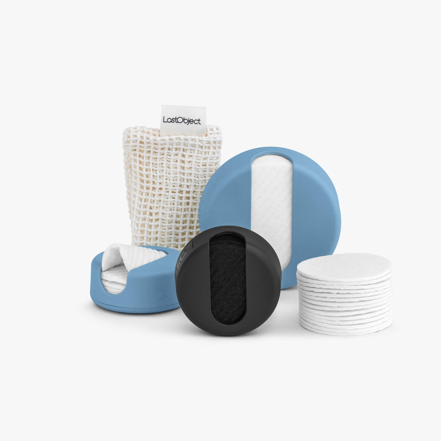 Reusable rounds made of a shape-shifting fabric that feels just like regular cotton rounds when wet. Contains 3x Case Made From Ocean Bound Plastic, 35x Reusable Rounds and a organic cotton washing bag.