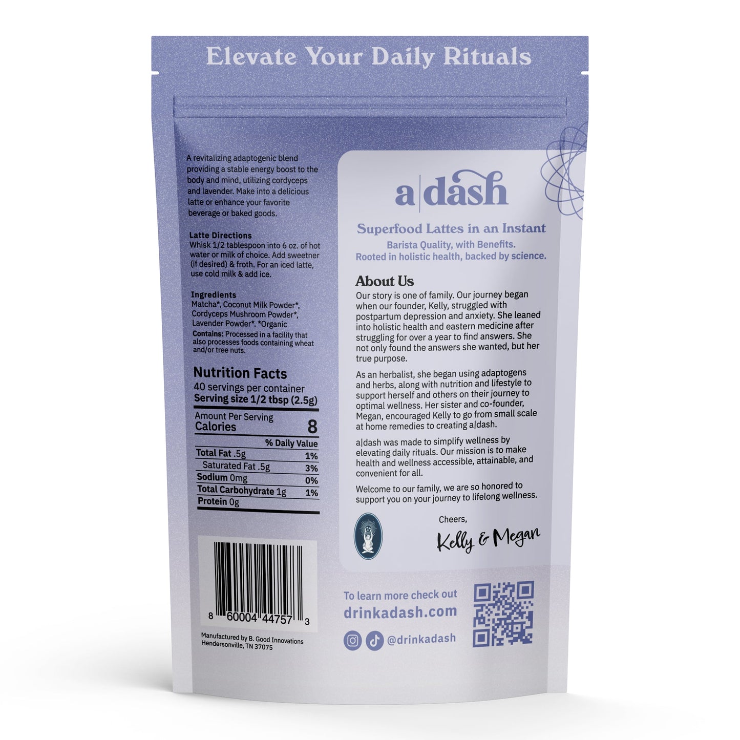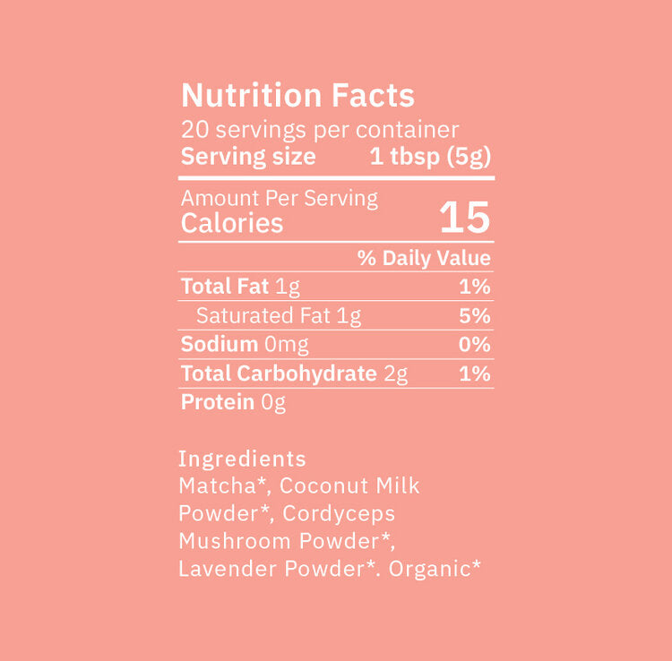 Experience a steady flow of energy to the body and mind. Our blend of nature’s most energizing mushroom with matcha and the calming properties of lavender give you the boost you need without the crash.