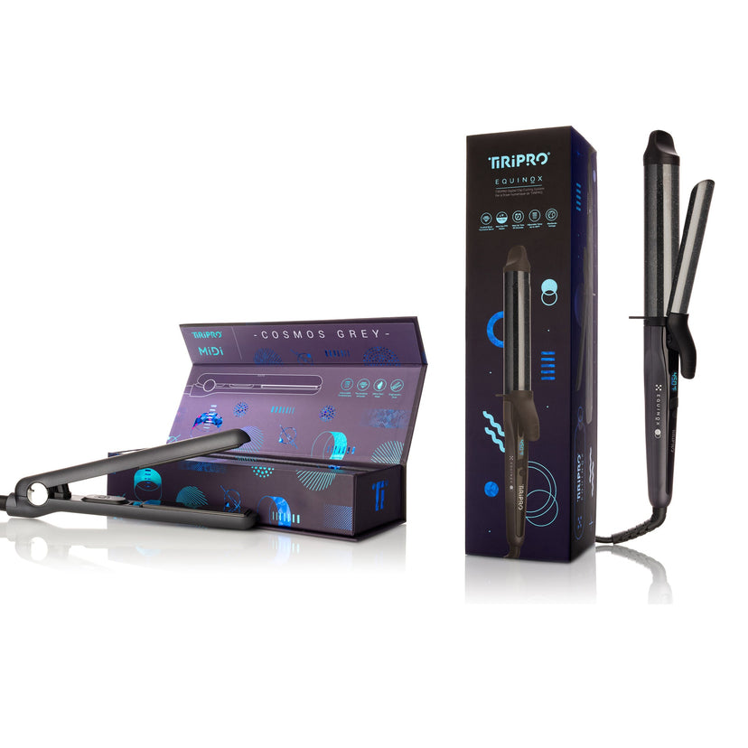 This exclusive set in sleek black combines the Midi Hybrid and the Clipless Graduated Curling Wand, offering unparalleled styling flexibility & precision.