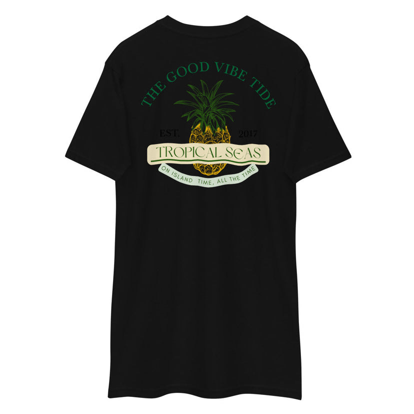 Elevate your summer style with the men's Island Time tropical t-shirt. This premium tee features a classic, sophisticated fit made with durable ring-spun cotton material that is both soft and comfortable. The tropical print design adds a touch of island vibes to your wardrobe. Whether layered or worn on its own, the men's Hawaiian shirt is the perfect choice for effortless summer style. Upgrade your wardrobe today with this must-have men's tropical print t-shirt!