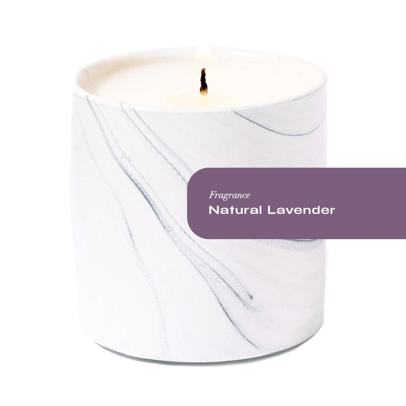 A handmade, hand-painted ceramic vessel featuring a unique marble design: white with elegant swirls of gray and black. This timeless décor will live on long after the candle has finished burning either refilled as another Plant Based Candle, as a planter for your favorite flora, or a practical container for your precious goods.