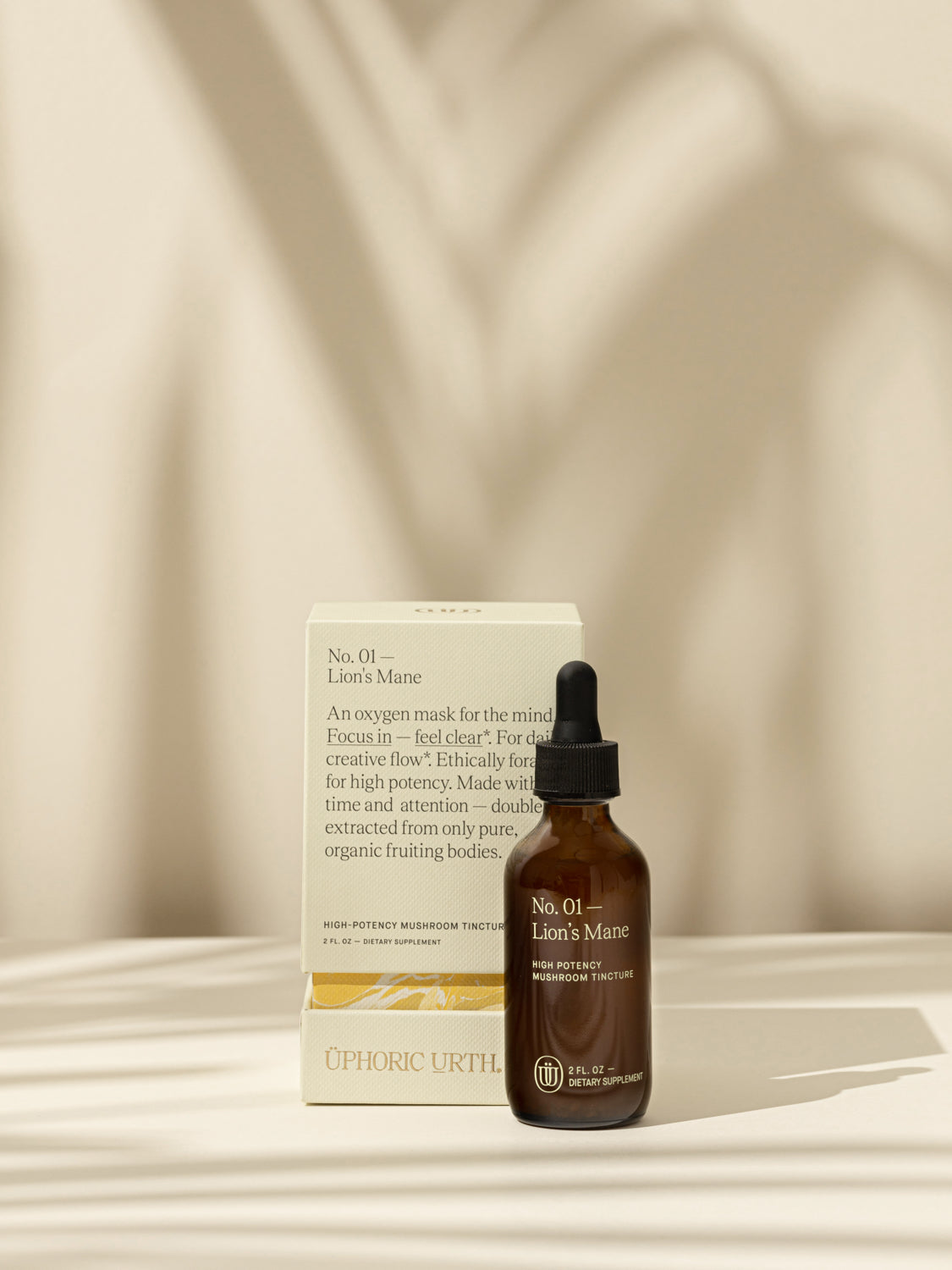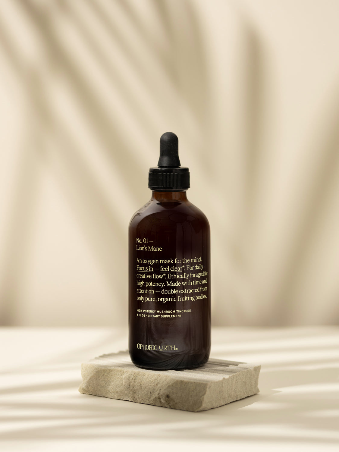 Lion's Mane is known to boost brain health and focus, support memory function, and enhance clarity and creativity. Studies have shown that Lion's Mane not only supports the immune system, but also supports the nervous system, resulting in mental clarity and mood boost. Like an oxygen mask for the mind. Focus in — feel clear, for daily creative flow.