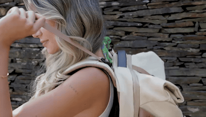 We are proud to bring another hemp product to life. , with a new expandable design and a new hemp fabric that is more durable and more waterproof than ever. It starts as a casual 20L everyday bag when fully compressed and it grows up to 45L when fully expanded. The roll-up offers 10 extra litters above and the hidden kangaroo pocket offers 10 extra litters below. You can also attach our front bag in front for an extra 5 liters of space.
