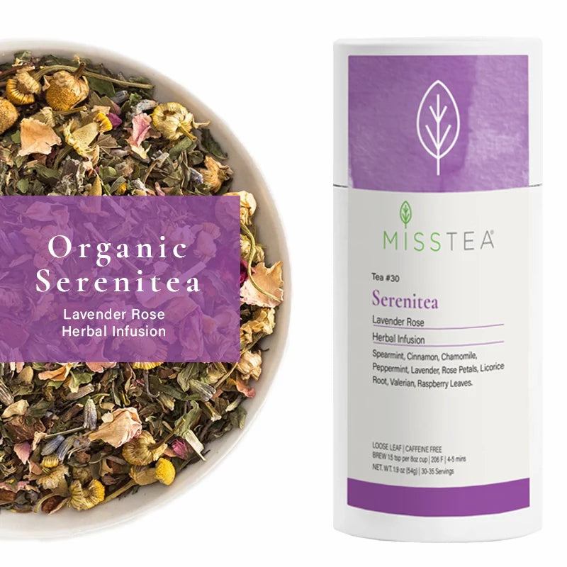 Organic Valerian, Organic Spearmint, Organic Chamomile, Organic Cinnamon, Organic Peppermint, Organic Lavender, Organic Rose Petals, Organic Licorice Root, Organic Raspberry Leaves.