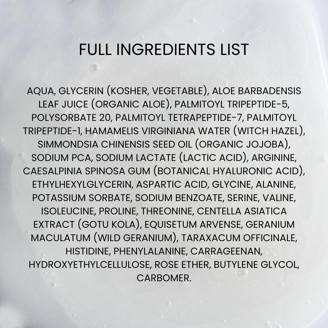 This innovative formula combines ingredients that synergistically work together to target and improve visible signs of aging such as: sagging skin, loss of elasticity, fine lines and wrinkles. This sensorial and lightweight serum fuses a carefully selected variety of Peptides with Amino Acids, Hyaluronic Acid, Centella Asiatica and Lactic Acid to reach an exceptional level of efficacy.