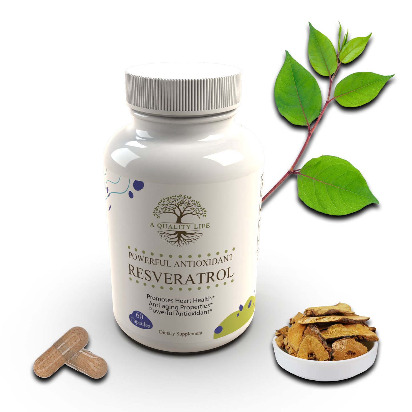 Resveratrol is a powerful antioxidant that counteracts cell damage caused by free radicals which studies have linked to aging and health issues. Resveratrol is believed to offer protection against cellular and tissue damage.