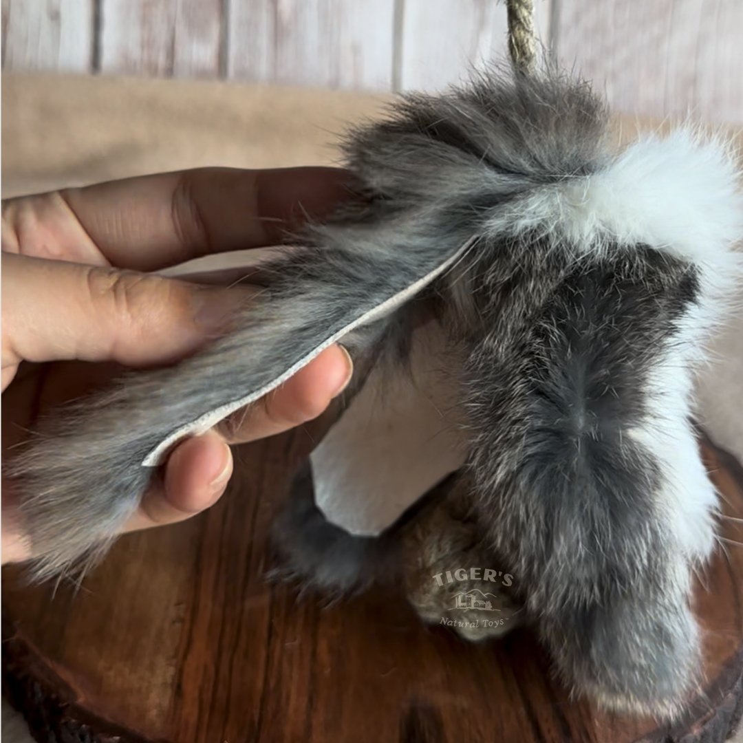 Home/Collections/Rabbit Fur Cat Toy with Natural Hemp Rope, Handmade Cat Chase Toy