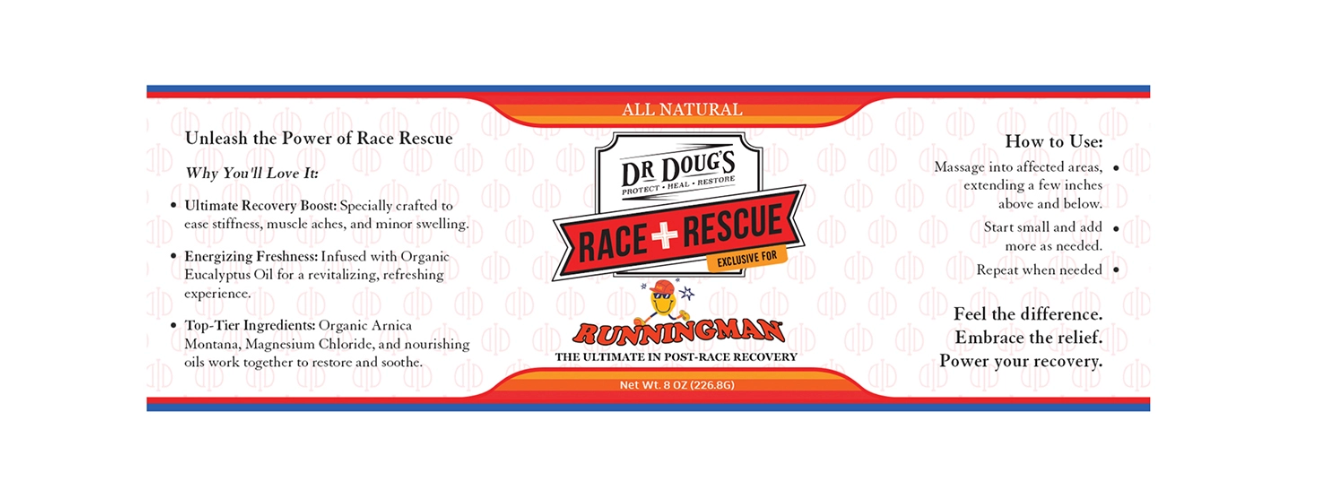 Hey runners! Get ready to take your recovery to the next level with Race Rescue, our exclusive, limited-edition gem designed for the All Day Running Co event, Runningman. We’re thrilled to present Dr. Doug’s Recovery Balm + Organic Eucalyptus Oil—crafted to help you bounce back faster and feel fantastic.