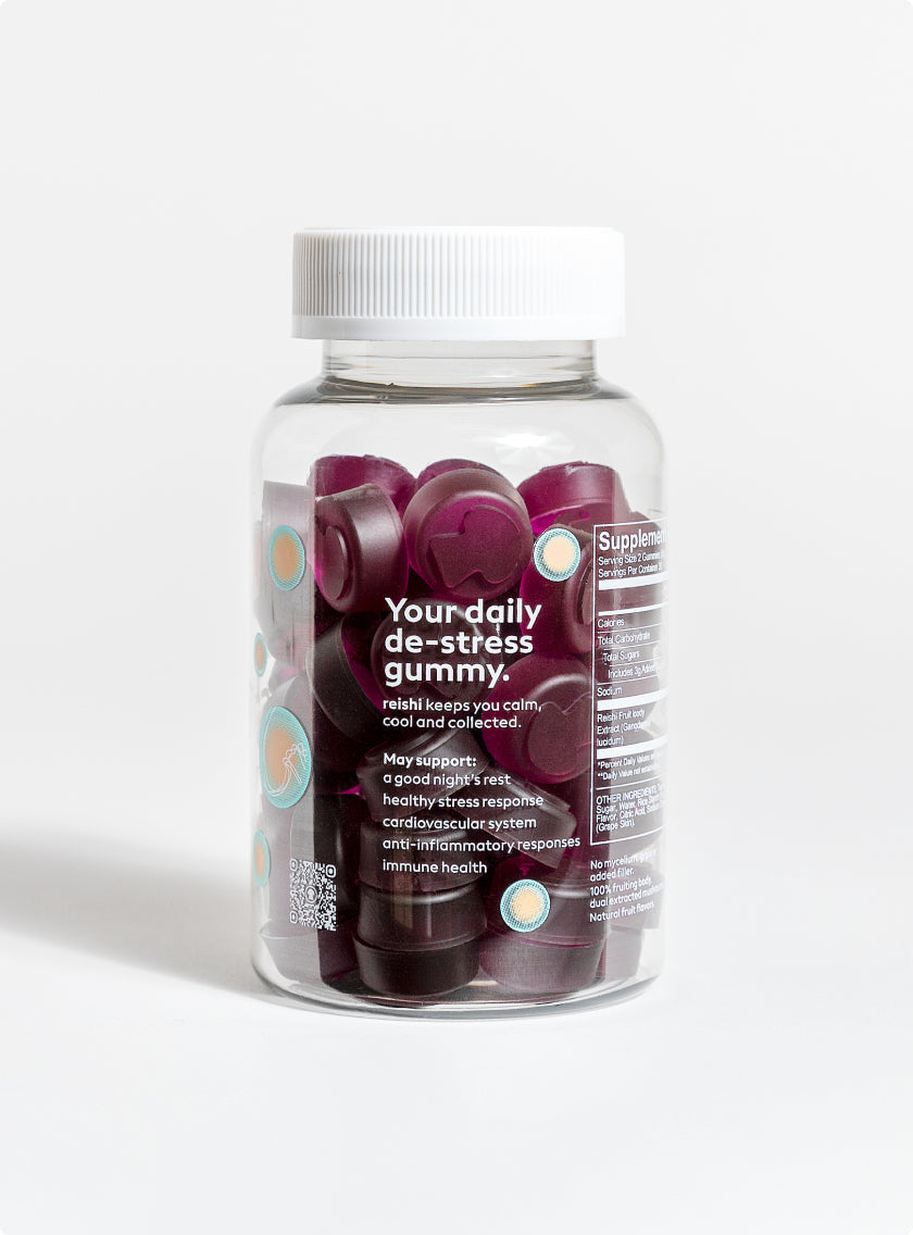 Reishi helps lower your body's cortisol levels (which cause stress) allowing you to experience an incredible sensation of calm and relaxation.