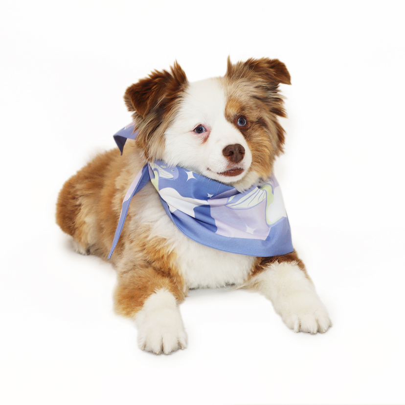 An ethereal mushroom scarf with an ombre periwinkle hue. Featuring a soft, 100% cotton fabric with a triangle shape so that no folding is required.