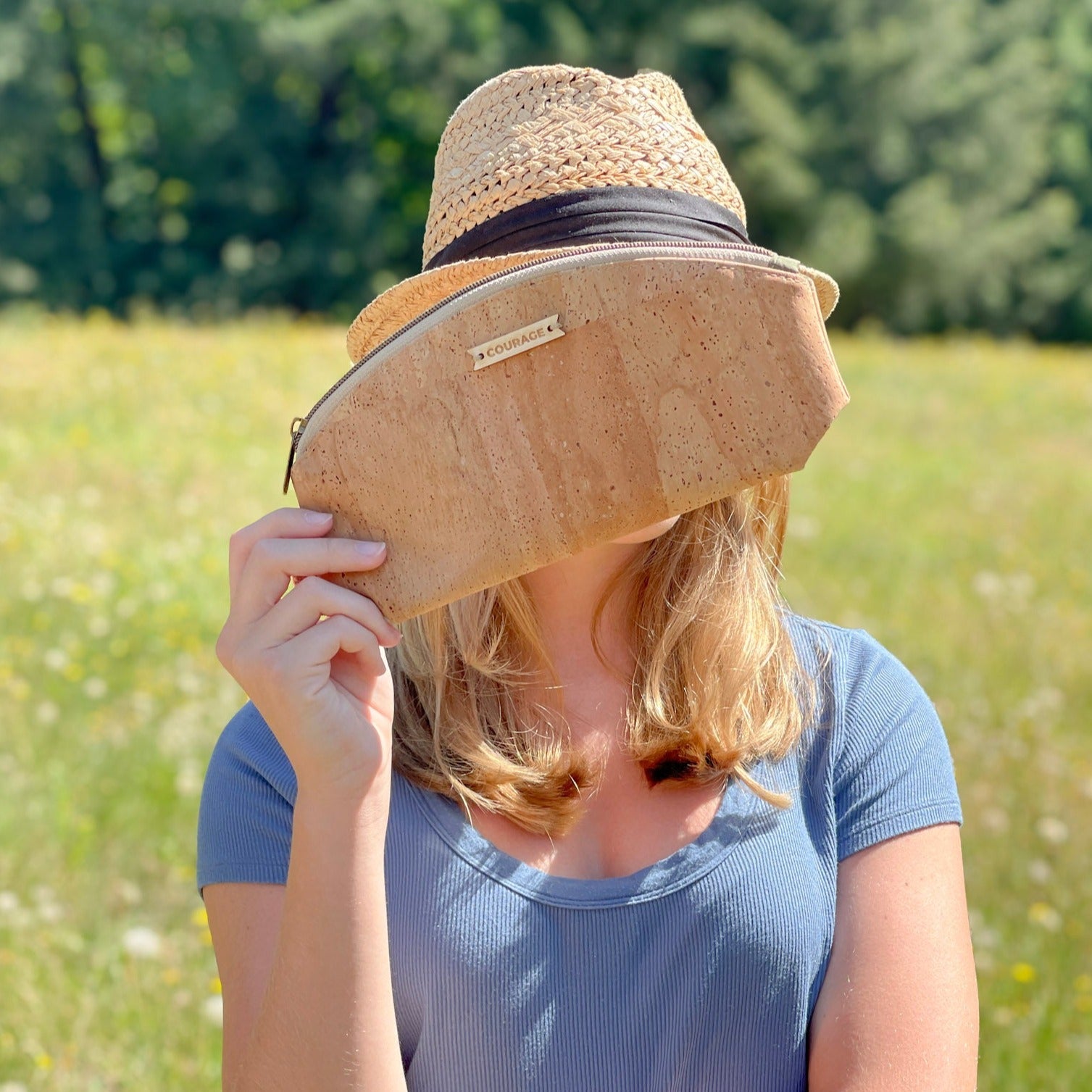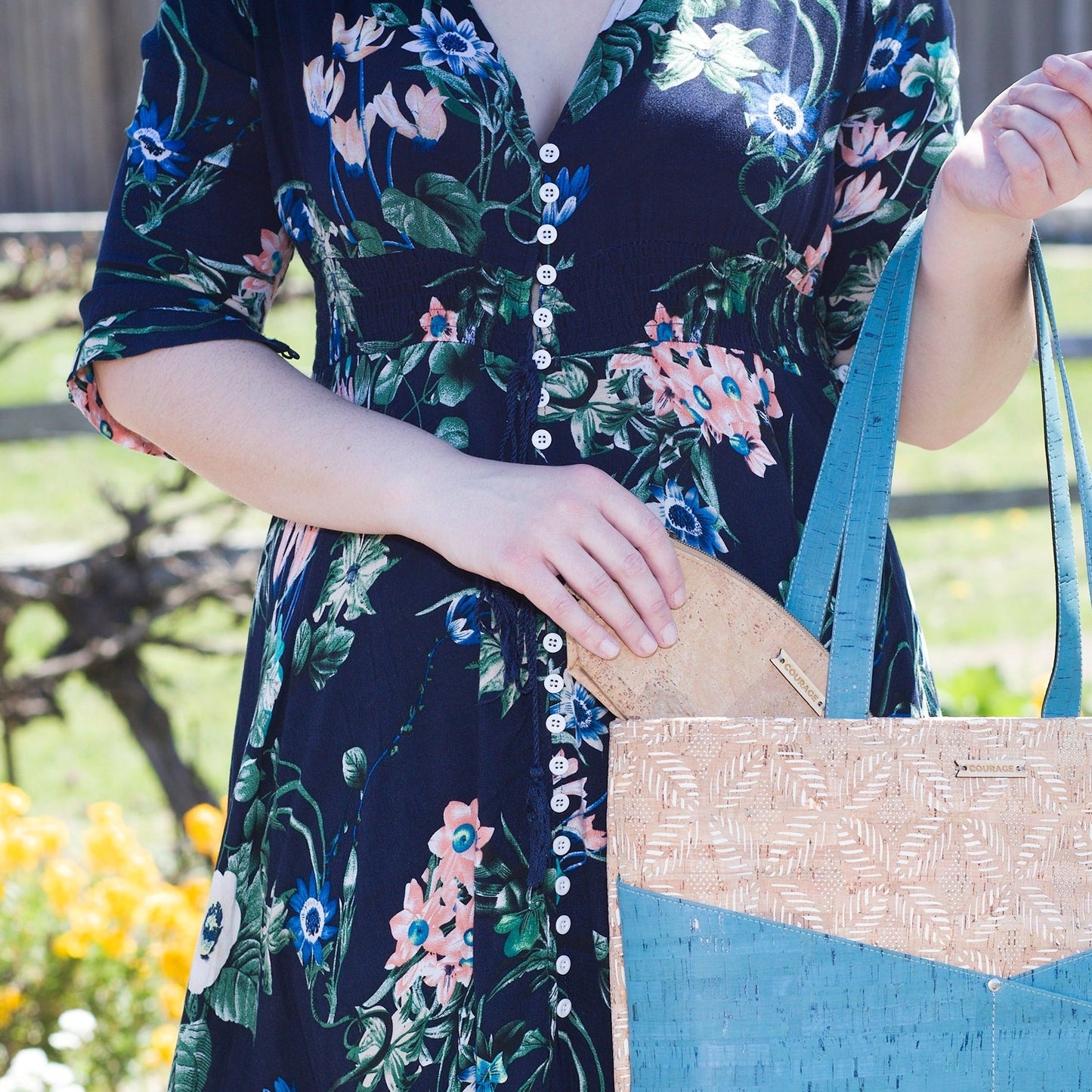 You'll love filling this curvy top bag with all your favorite goodies and notions. It's the perfect size for organizing makeup brushes, writing and art supplies, or any little bits that need containing. Cork fabric makes this bag a memorable RULE BREAKER, just like you!