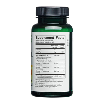 Sea Buckthorn Oil Capsules provide a broad range of omega fatty acids, namely Omega 3, Omega 6, Omega 7, and Omega 9 with a particularly high focus on Omega 7. Every serving contains a whopping 300mg which provides skin, metabolic and heart health. Among the various types of omega fatty acids, Omega 7 is known to improve skin nutrition, moisture and elasticity and support general health and skin care.