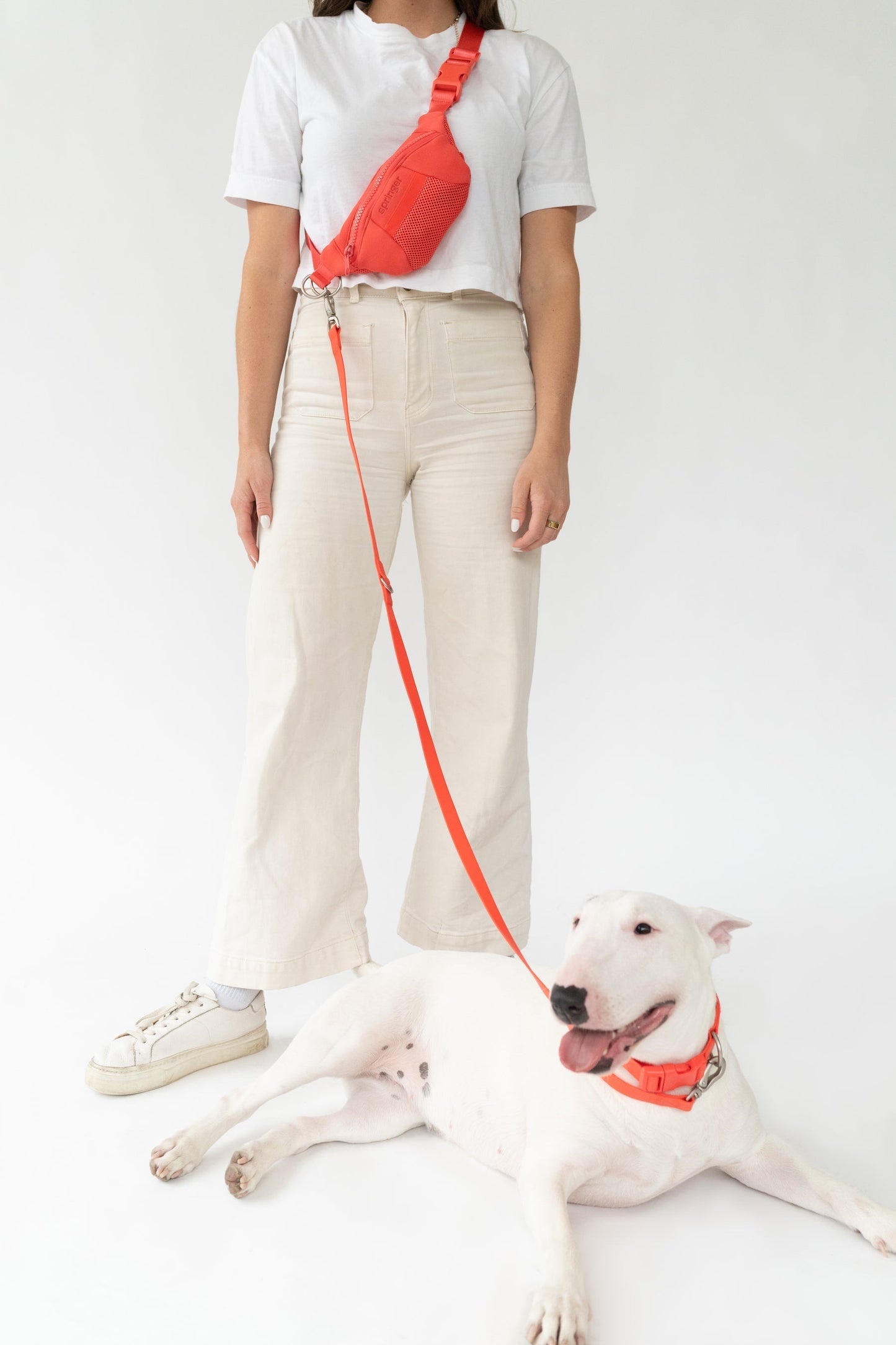 Upgrade your pup parenting game with the Sling Bag + Dog Leash! With its durable construction, innovative design, and hands-free mobility, it's the perfect accessory for any adventure with your pup. Designed to hold all your essentials, including your phone, cards, and keys, as well as your dog's things. With a built-in poop bag dispenser and a mesh pocket for treats, you can easily access everything you need to keep your pup happy and healthy on the go. The included 4ft dog leash attaches directly to the bag, allowing your dog to roam by your side while you keep your hands free. When you're finished with your walk, simply unclip the leash from the bag and go about your day with all your essentials close at hand.
