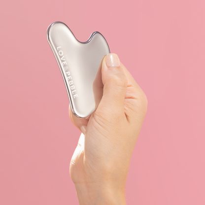 Our Gua Sha is 100% Stainless steel. Non-porous, anti-bacterial, and easy to clean.