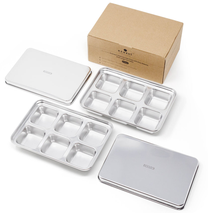 Home/Collections/STAINLESS STEEL ICE CUBE TRAYS, 12 Large Cubes, 2 PACK by ecozoi