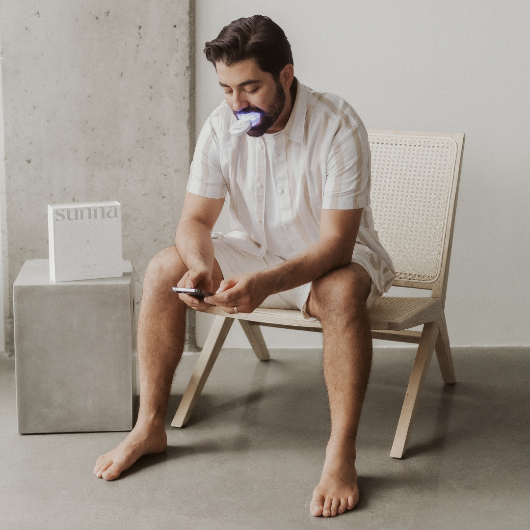 The Advanced Home Whitening Kit is sensitivity-free, enamel-safe and includes the SunnaSmile Professional Strength Xyliprox gel and light. You can use the kit on it’s own at home preferably while you watch Netflix.