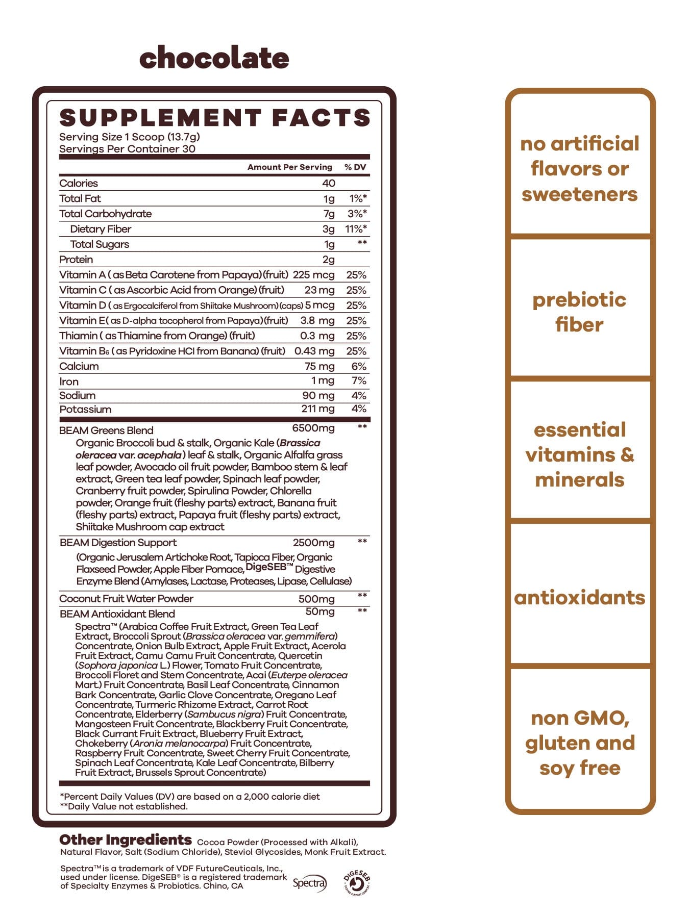 our greens blend leads first with organic broccoli and organic kale plus so many high quality greens what will contain important antioxidants, support better digestion, and boost your immune system.