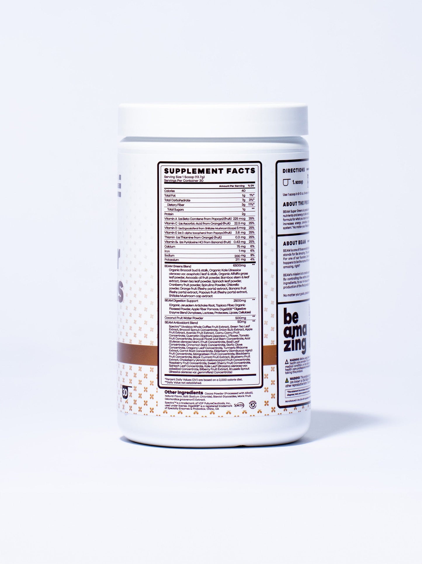 BEAM Super Greens is packed with 35 fruits and vegetables giving you the nutrients and energy to Be Amazing. Think of this as your all-in-one wellness formula for what you lack in your daily diet. It supports your immune system, increases energy, provides antioxidants, and reinforces your digestive system.