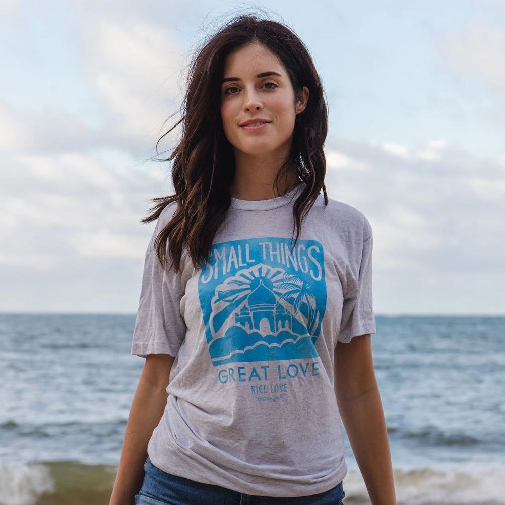 Your purchase of this tee provides 1 kilo (2.2 lbs) of rice to a family in need in India. When you receive this item, it will have a tag number that can be used to look the family you fed on the home page of ricelovebags.com. Buying this tee feeds families!