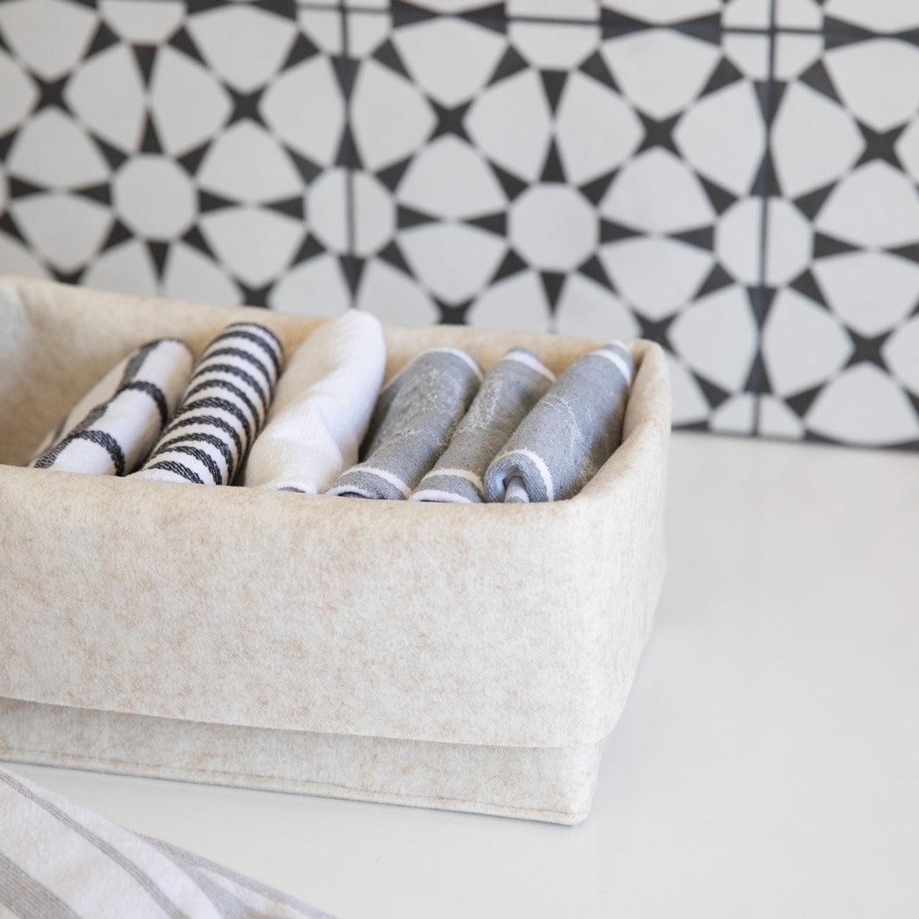 Our Flex Bin - Small offers a compact and versatile storage solution that maintains its shape when in use and can be folded to adjust its height for various needs.