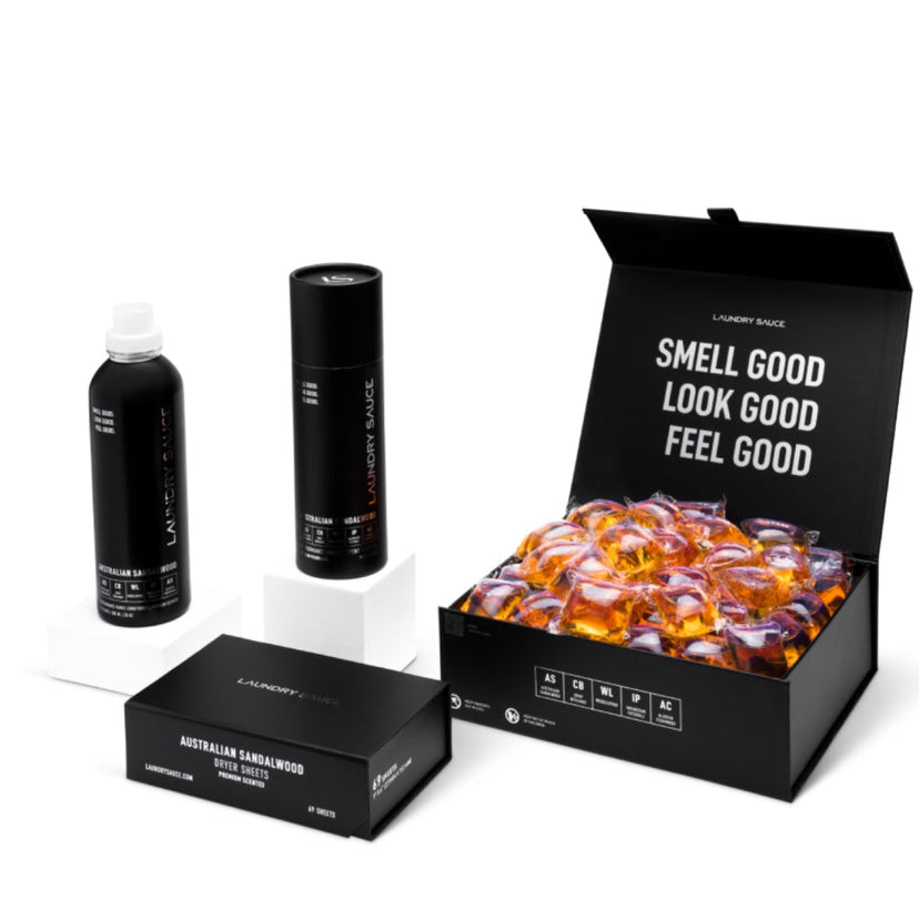 Immerse yourself in the epitome of laundry sophistication with the Laundry Sauce Signature Package. Our Performance Laundry Pods offer 4x cleaning power, tackling stains while imparting a luxurious fragrance. The Advanced In-Wash Scent Booster enhances this aroma, ensuring a lasting impression. Anti-static Luxury Dryer Sheets deliver an extra layer of scent, elevating fabric softness. The bundle culminates in our luxurious Performance Fabric Softener, promising to reduce wrinkles and preserve fabric quality. A symphony of science, luxury, and powerful cleaning in one package.