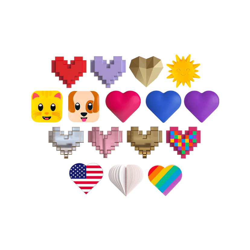 The Spinnies Pack includes: the red pixel, color pixel, lilac, golden hour, precious, sunny, cat, dog, pink tender, blue tender, purple tender, sunrise, paper, star dust, pride, and USA flag spinnies.