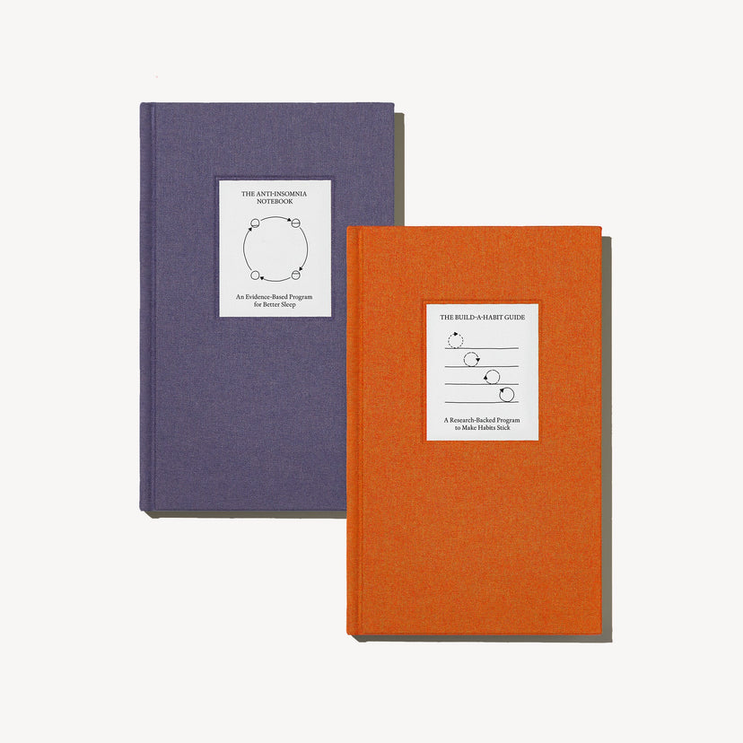 Improve your sleep by pairing Cognitive Behavioral Therapy for Insomnia—a structured, 6-week program to increase restfulness—with consistent, bite-sized sleep hygiene practices. The Anti-Insomnia Notebook will teach you the skills and tools to get more and better rest; and The Build-a-Habit Guide will help you follow through on the practices that support your progress.