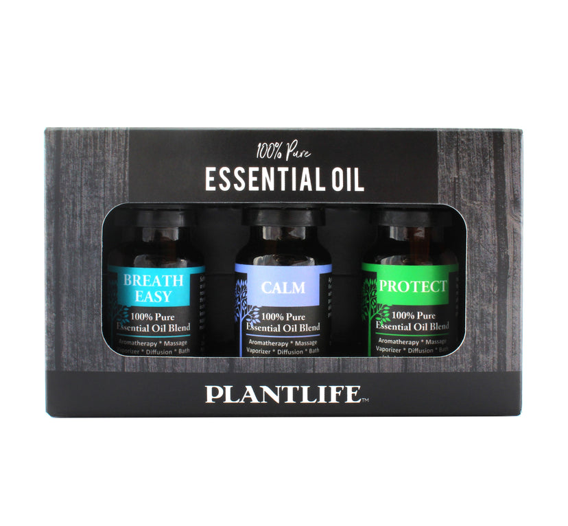 A 3 pack of our most popular essential oil blends. Set includes one 10ml each of Breath Easy, Calm, and Protect.
