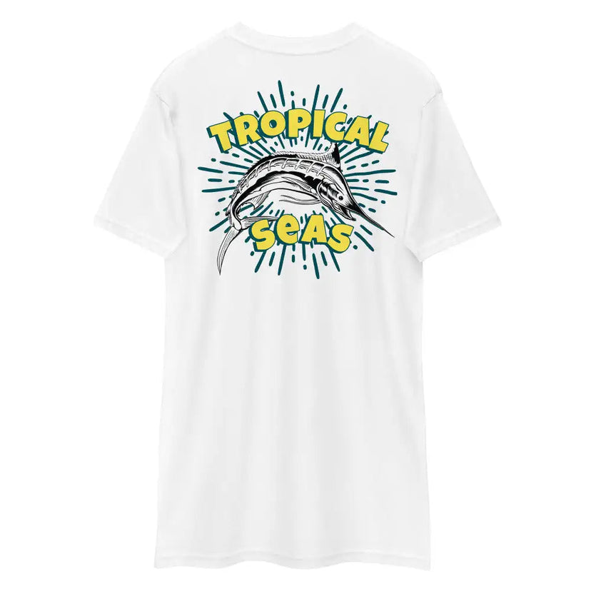 Elevate your summer style with the men's Funky Sailfish tropical t-shirt. This premium tee features a classic, sophisticated fit made with durable ring-spun cotton material that is both soft and comfortable. The tropical print design adds a touch of island vibes to your wardrobe. Whether layered or worn on its own, the men's Hawaiian shirt is the perfect choice for effortless summer style. Upgrade your wardrobe today with this must-have men's tropical print t-shirt!