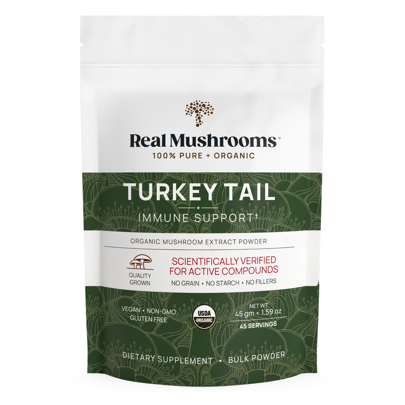 • Hot water extracted from 100% turkey tail mushrooms