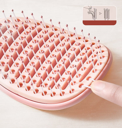The unique two-piece design makes cleaning easy and efficient. Simply detach the bristle pad, rinse it under water to remove accumulated hair, product buildup, and debris, and reattach it in seconds. No more tangled hair or stubborn buildup – just a consistently clean and hygienic brush every time.