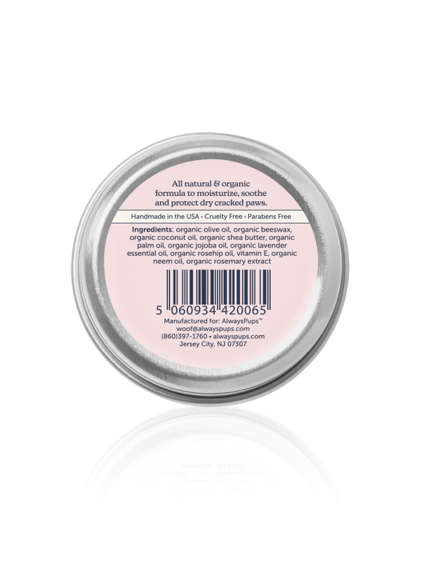 Moisturize, soothe and protect your pup's dry cracked paws all year round with this lick-safe formula. Handmade with natural moisturizer blend including organic shea butter, coconut oil, lavender oil and rosehip oil.