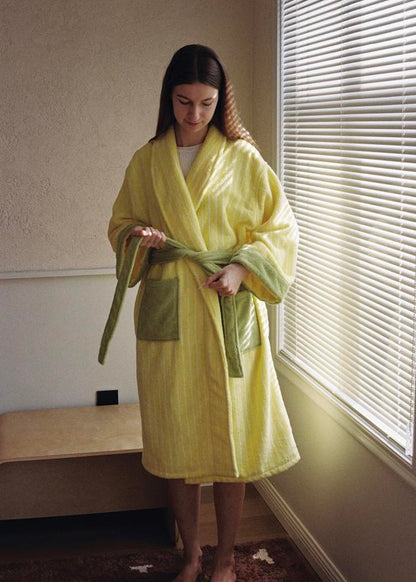 Featuring whimsical stripes, these dopamine bath robes are made from a luxurious gram weight of 460g 100% organic long-stapled cotton, making them incredibly soft and gentle on your skin.