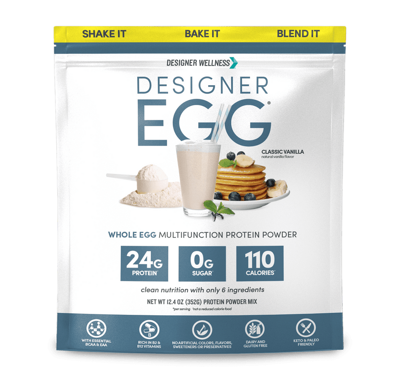 "Can't get enough eggs? You’ll love this Designer Egg Protein Powder. It has the protein equivalent of 3 regular eggs, but is 50% lower in calories, 93% less fat, and 98% cholesterol-free*!"