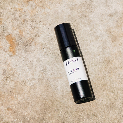 gender neutral perfume oil is inspired by our much-beloved Verano Body Oil. The familiar warm, refreshing scent is elevated with zesty citrus, luxurious earthiness, and hints of tropical blooms.