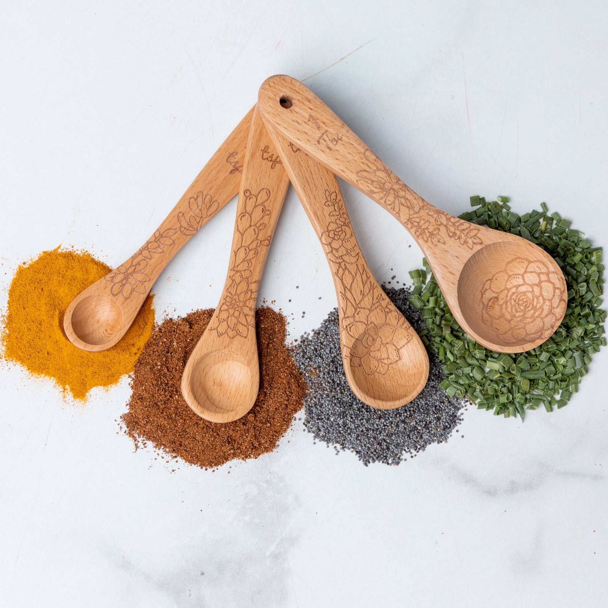 • Set includes 1 tablespoon, 1 teaspoon, 1/2 teaspoon and 1/4 teaspoon