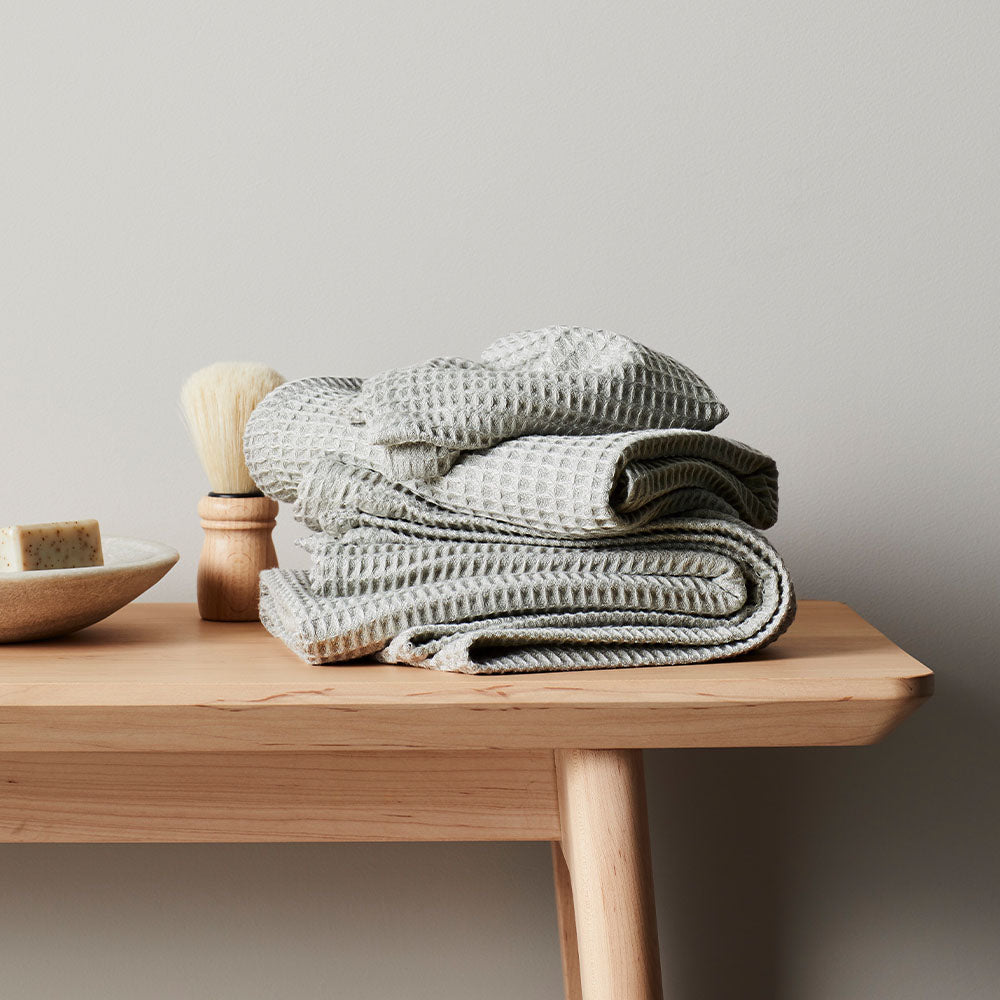 • Select your preferred waffle towel size(s) or choose the Towel Set (includes one bath towel, one hand towel and one washcloth)