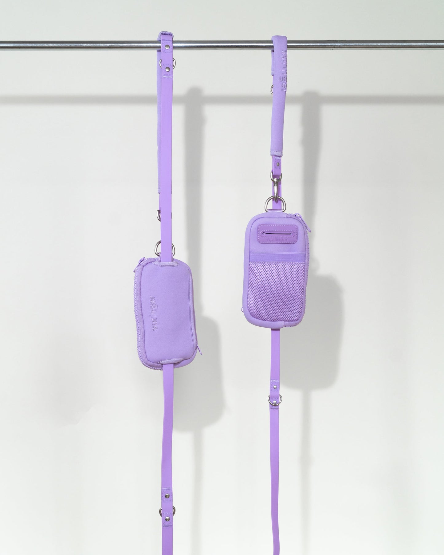 Introducing the all-in-one Walk Bag & Dog Leash— the ultimate solution for pup parents who want to keep all their essentials in one place while on the go. Made with a comfortable neoprene handle and innovative design, the bag provides a secure spot within easy reach for all your valuables, plus a leash to keep your pup by your side. You can store your phone, cards, and keys, along with all of your pup's essentials, such as a built-in poop bag dispenser and a mesh treat pocket for easy training! We even added a secret fold-out bag to store your pup's dirty tennis ball, making it easy to keep things clean and mess-free on the way back from the park.