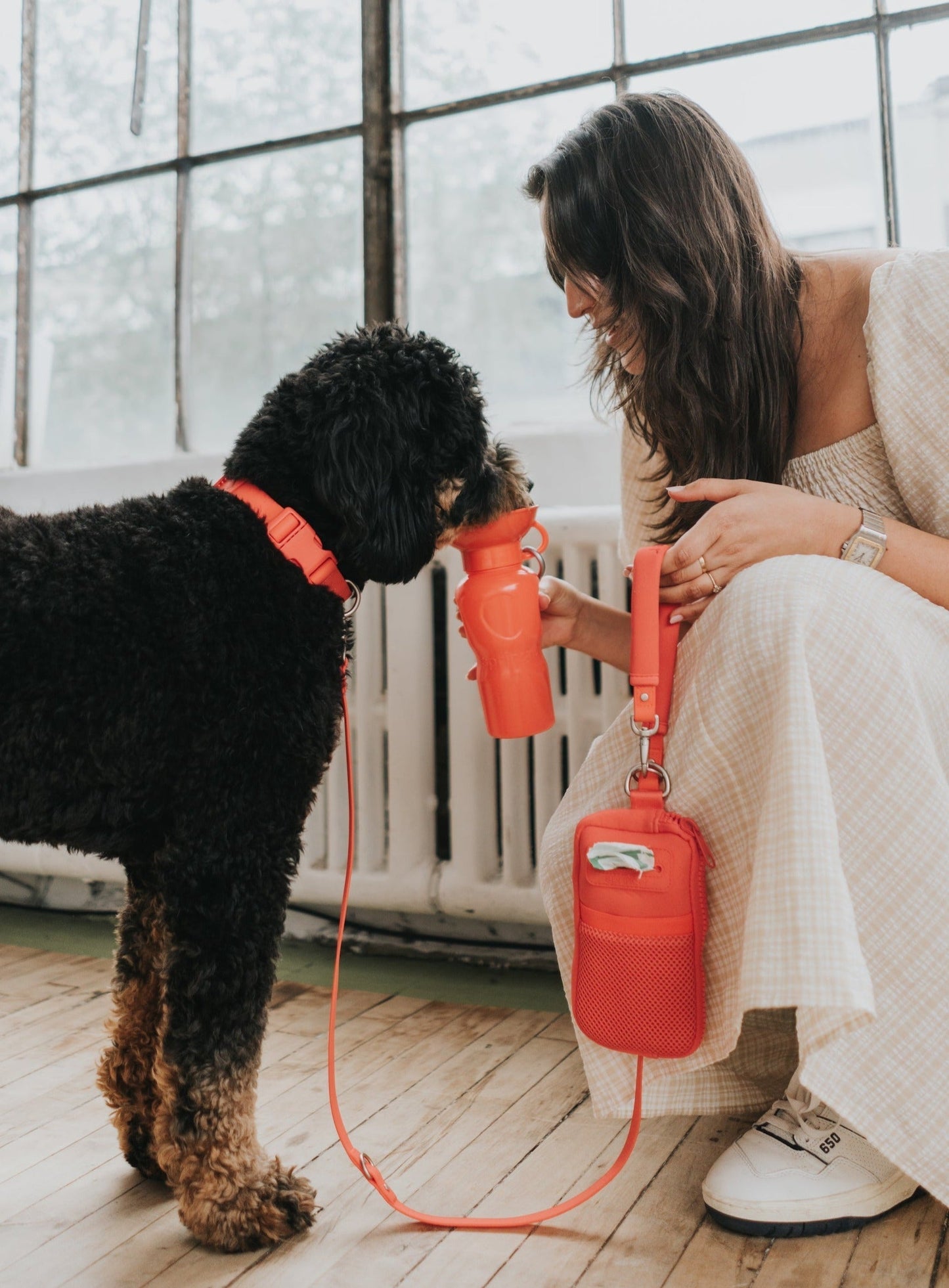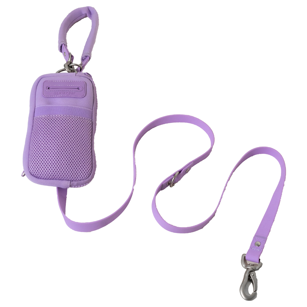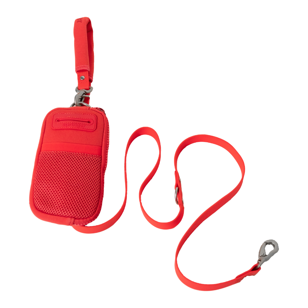 Introducing the all-in-one Walk Bag & Dog Leash— the ultimate solution for pup parents who want to keep all their essentials in one place while on the go. Made with a comfortable neoprene handle and innovative design, the bag provides a secure spot within easy reach for all your valuables, plus a leash to keep your pup by your side. You can store your phone, cards, and keys, along with all of your pup's essentials, such as a built-in poop bag dispenser and a mesh treat pocket for easy training! We even added a secret fold-out bag to store your pup's dirty tennis ball, making it easy to keep things clean and mess-free on the way back from the park.